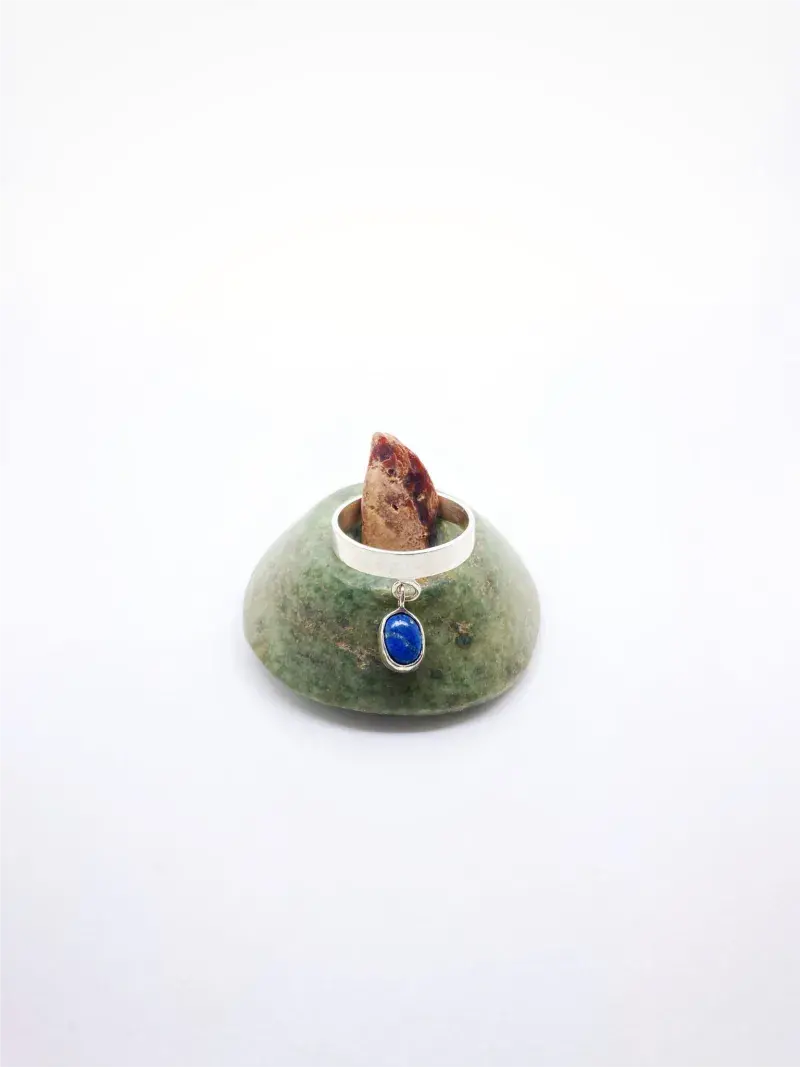 Anillo con Lapislázuli Colgante, elaborado de manera artesanal en nuestro taller, usando técnicas orfebres tradicionales. Se utiliza plata Sterling Ley 925 y piedras naturales auténticas.