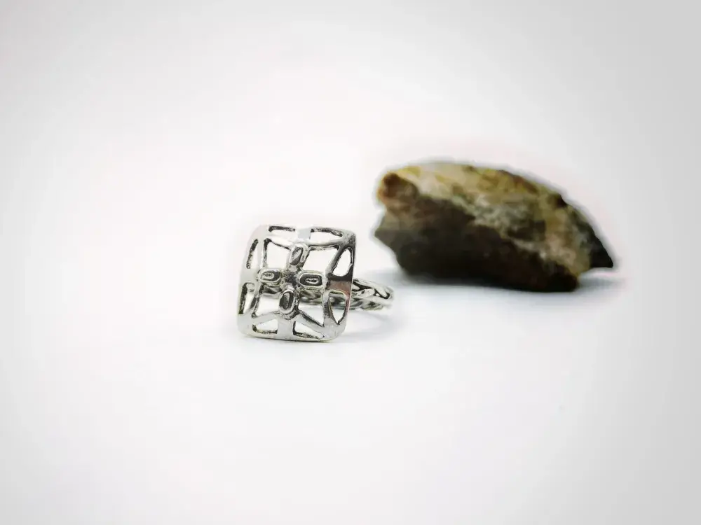 Anillo de Plata inspirado en las formas básicas de los mosaicos romanos.