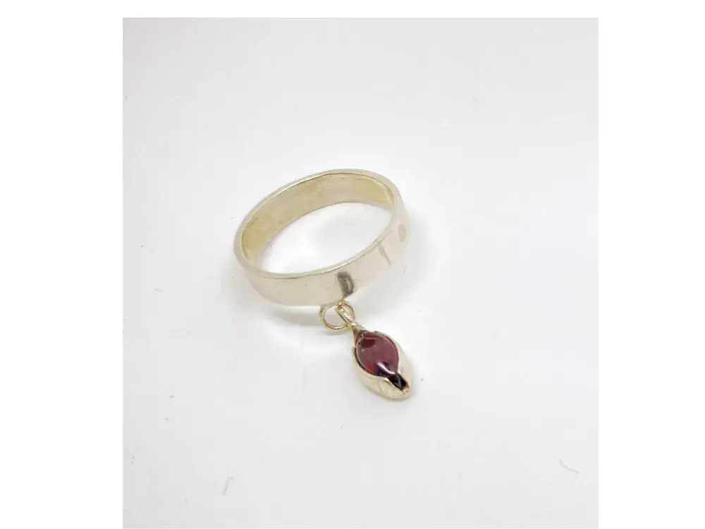 Anillo Gota Alargada de Granate, elaborado de manera artesanal en nuestro taller mediante técnicas orfebres tradicionales. Utilizamos plata Sterling Ley 925 y piedras naturales auténticas.