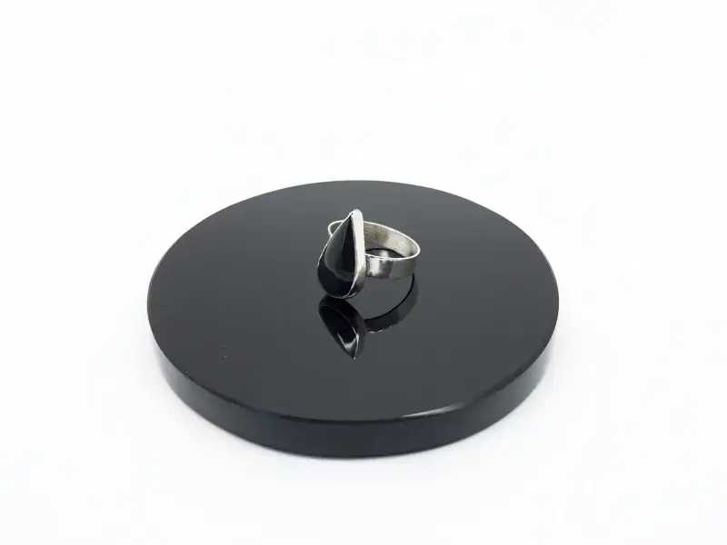 Anillo Gota de Ónix con Bisel, elaborado de manera artesanal en nuestro taller mediante técnicas orfebres tradicionales. Utlizamos plata Sterling Ley 925 y piedras naturales auténticas.