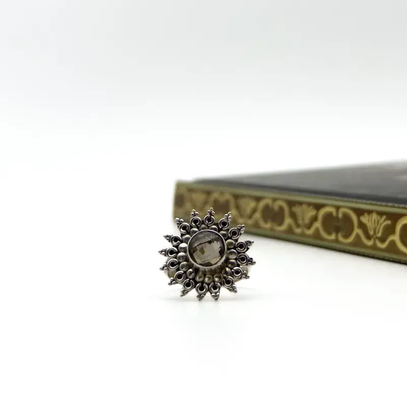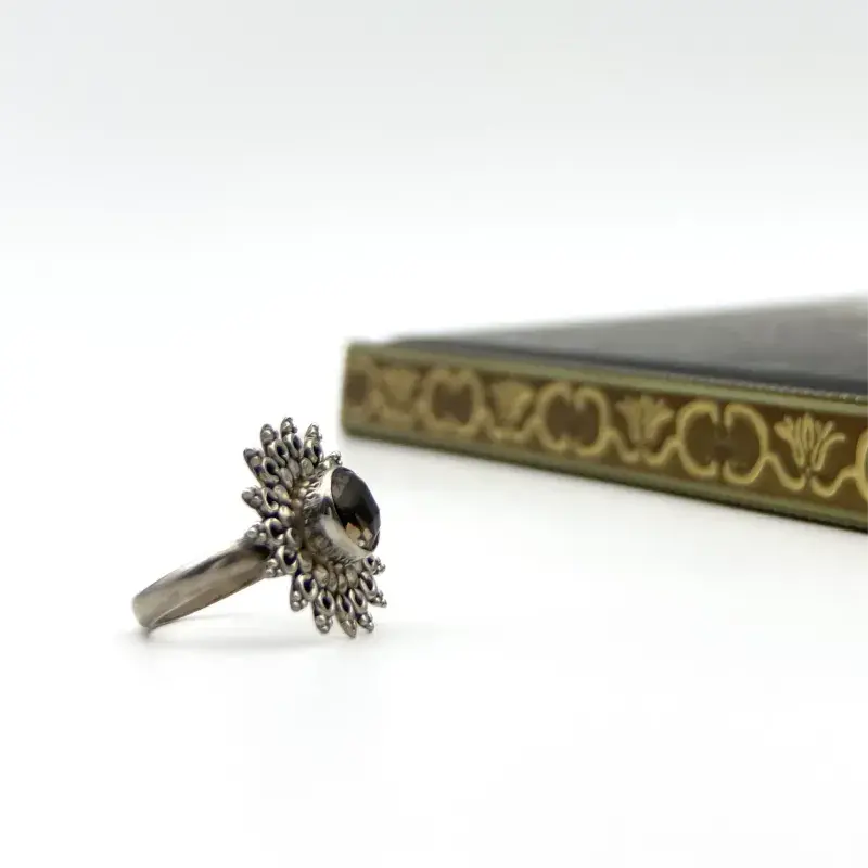 Anillo Topacio Ahumado. El trabajo de montaje de las piedras se hace con cuidado y detalle en el taller para que luzcan su esplendor.