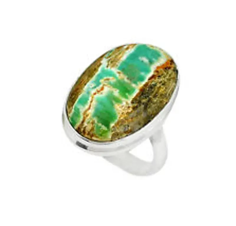 Anillo con variscita, raro mineral que generalmente presenta una gama que puede ir desde el verde amarillento al verde azulado.