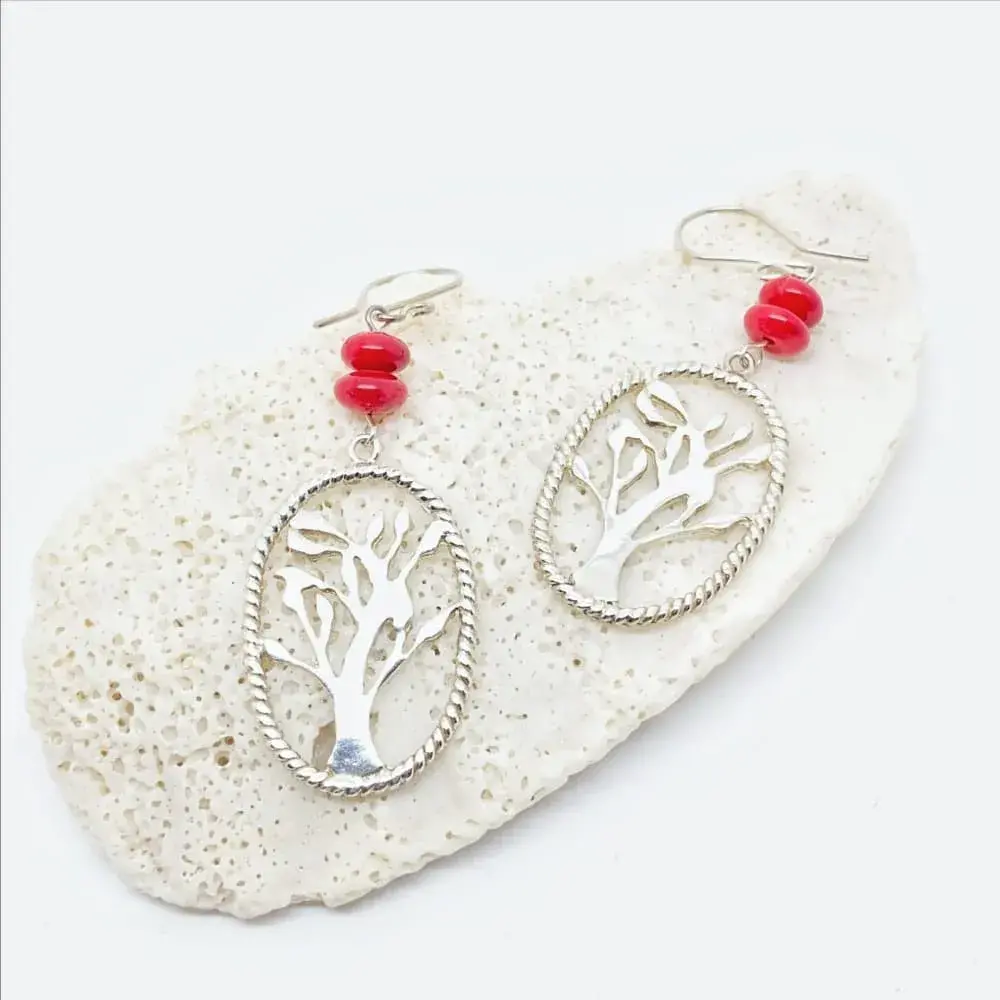 Aretes con la figura de un árbol de olivo, que representa la longevidad.