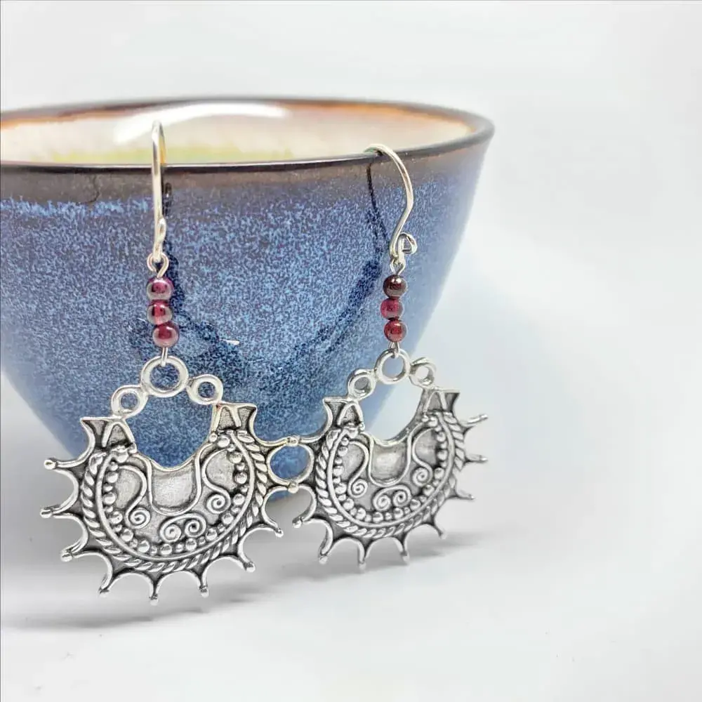 Aretes inspirados en los ornamentos del pueblo hindú, elaborada con la técnica del cartoneado.