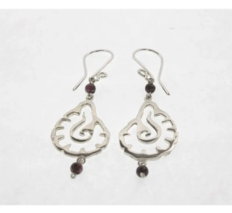 Aretes inspirados en un sello prehispánico de una concha plasmada en un fondo.