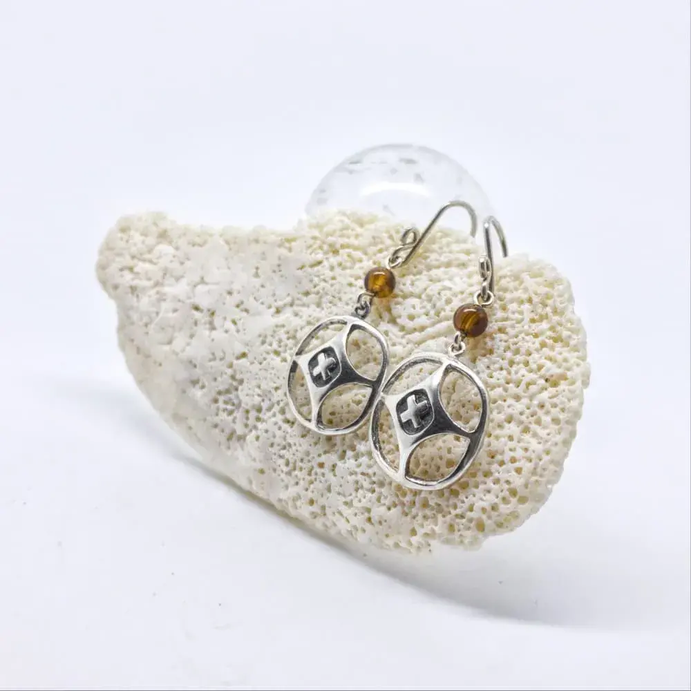 Aretes inspirados en mosaicos romanos en donde aparecen diversos motivos.