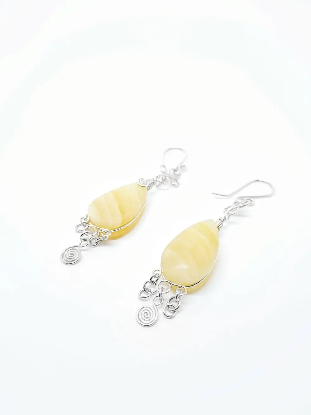 Aretes Gota de Ónix con Plata, elaborados de manera artesanal mediante la técnica de alambrismo, usando piedras naturales y plata Sterling Ley 925.