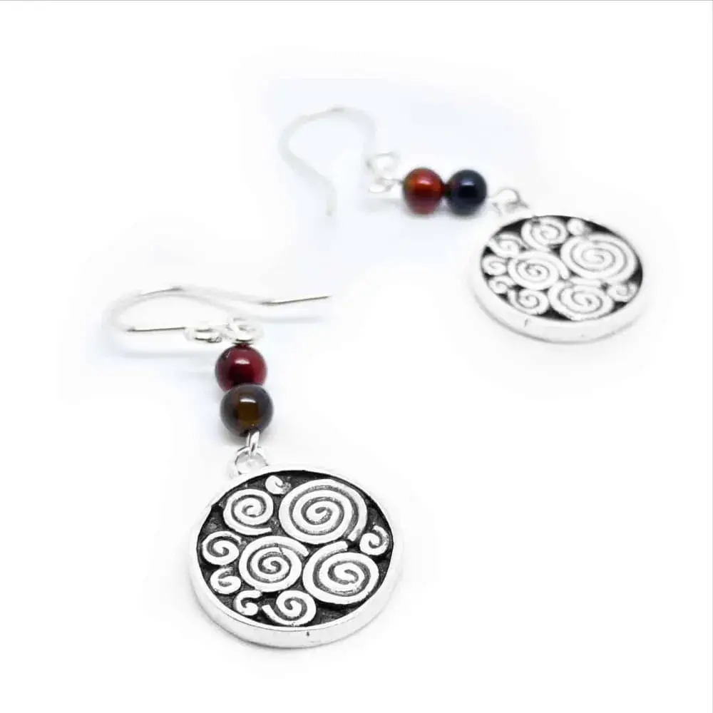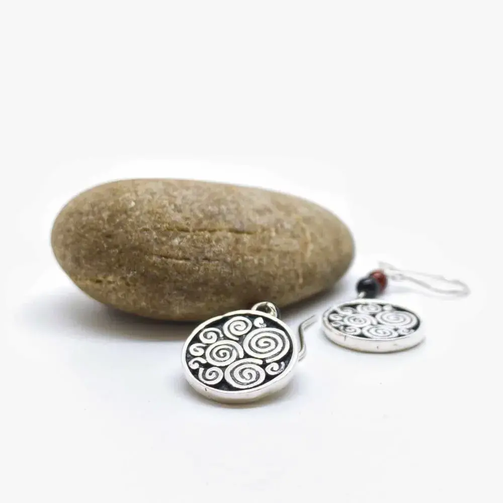 Aretes Grandes Sello Espirales, elaborados de manera artesanal en nuestro taller con técnicas orfebres tradicionales. Usamos plata Sterling Ley 925 y piedras naturales auténticas.