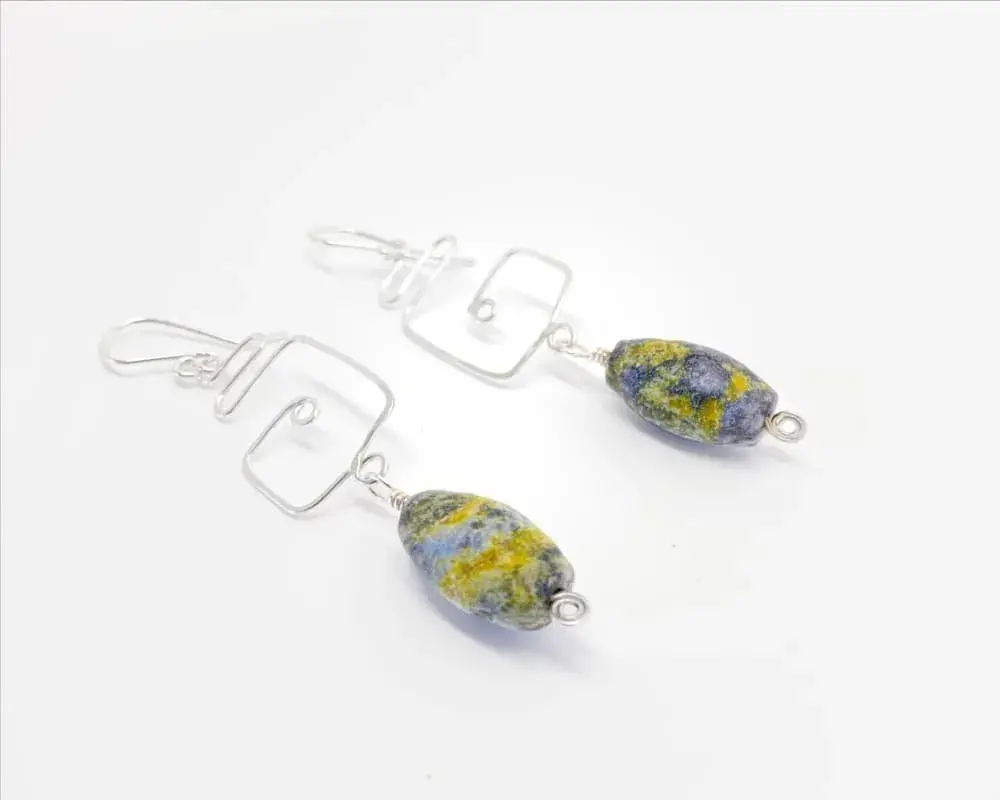 Aretes de plata Sterling Ley 925 con cuentas de jade auténtico y natural, elaborados artesanalmente mediante la técnica de alambrismo.
