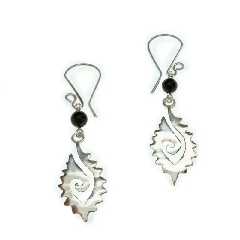 Estos aretes son una adaptación de un sello prehispánico encontrado en la Ciudad de México, que representa un corte de concha.