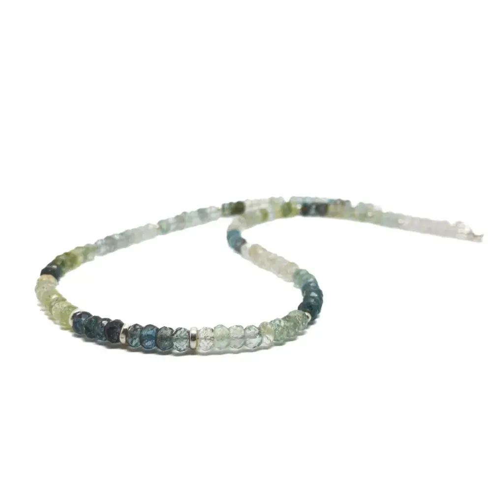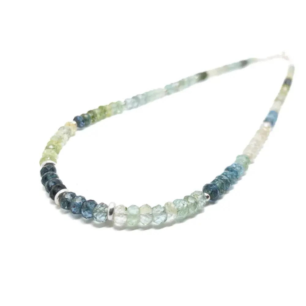 Collar Aguamarinas y Plata, elaborado de manera artesanal en nuestro taller. Las piedras naturales se montan con cuidado para que luzcan todo su esplendor.
