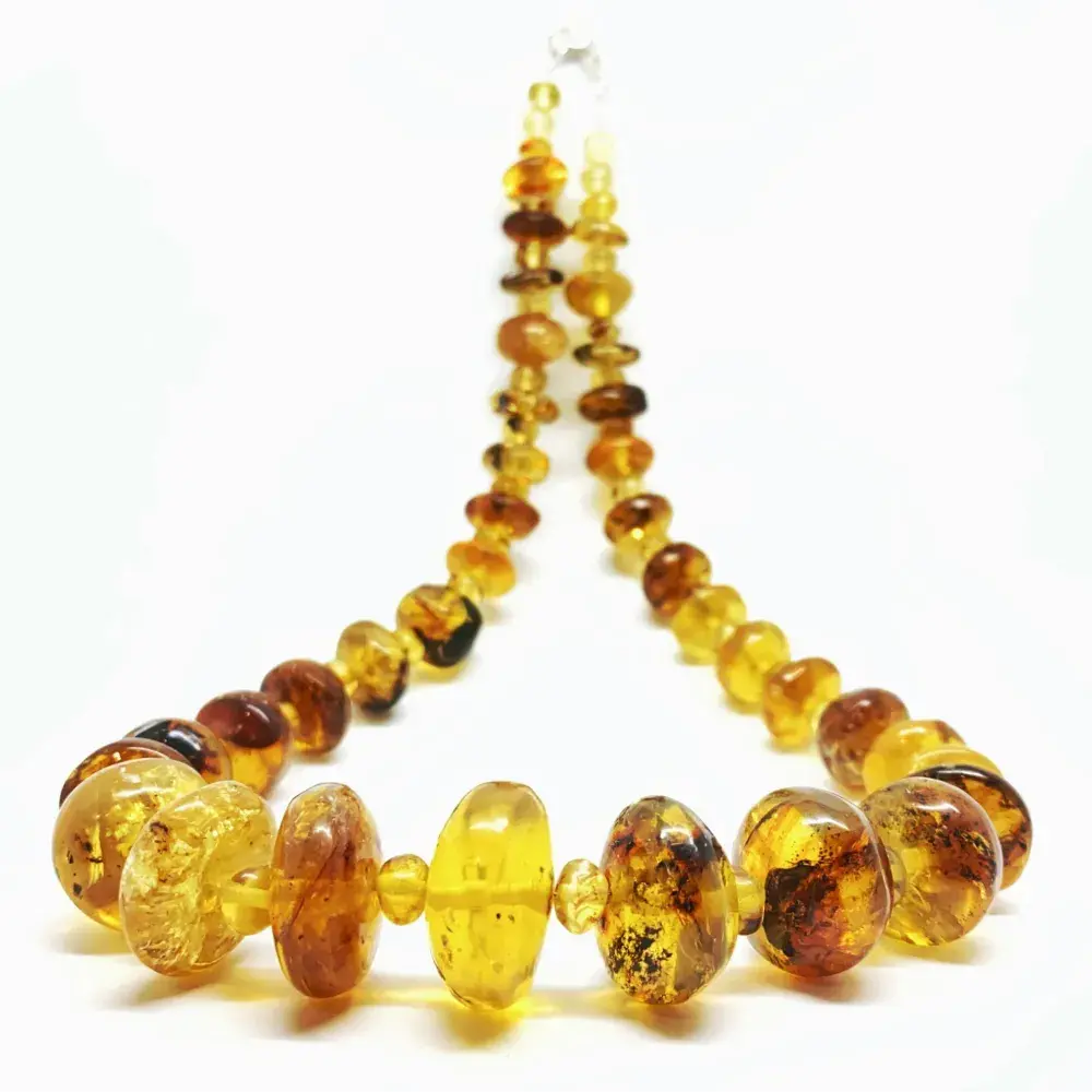 Collar ámbar discos , elaborado de manera artesanal en nuestro taller. Las piedras naturales se montan con cuidado para que luzcan todo su esplendor.