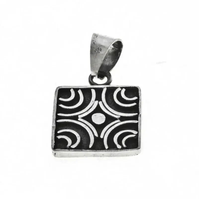 Este dije es una adaptación de un sello prehispánico en forma de cilindro, encontrado en la Ciudad de México que representa un diseño de un cuadrado.