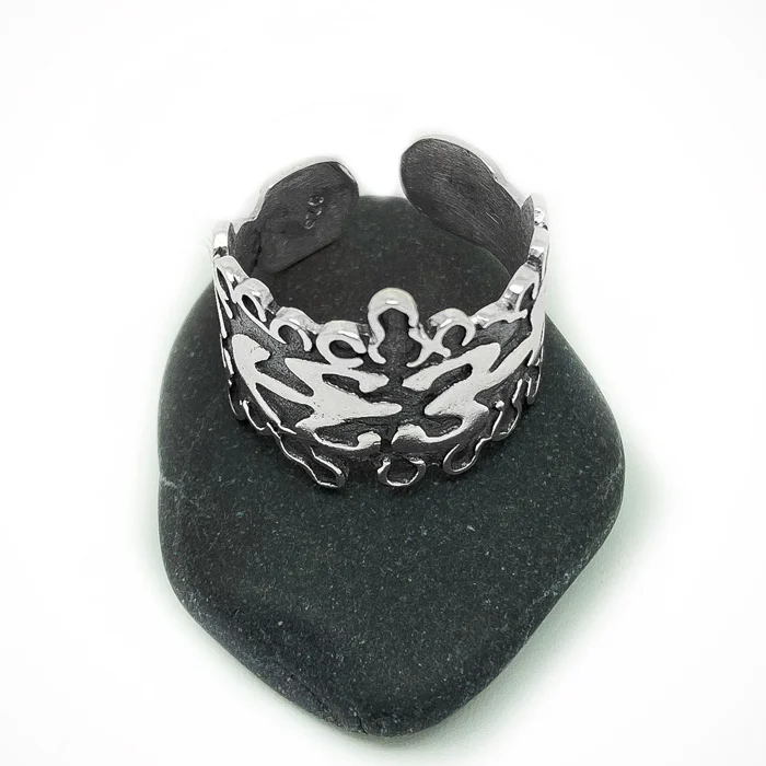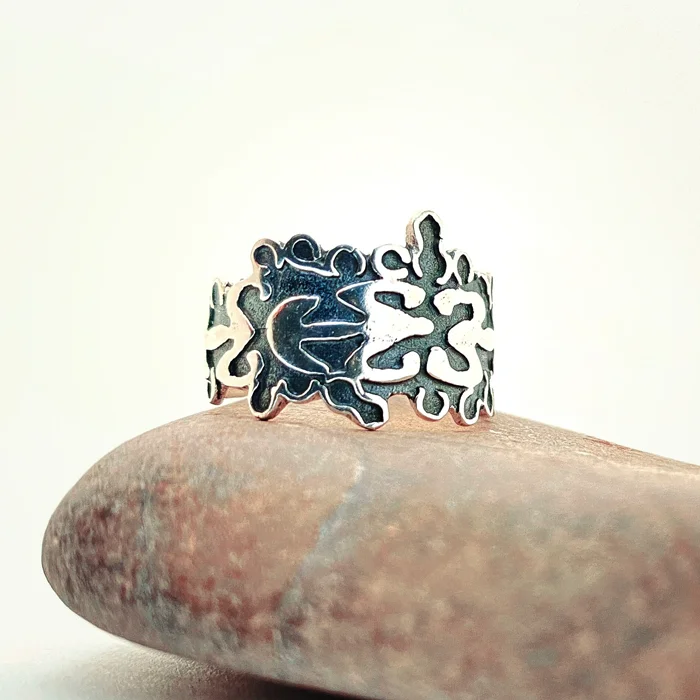 Este es un anillo ajustable con motivos antropomorfos de la región de Moana, la cual se encuentra en las Islas del Pacífico.
